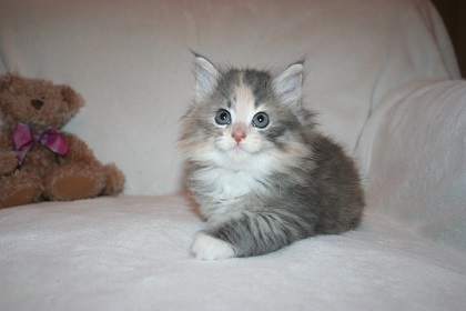 Very pretty Blue/Cream Tortie girl with White Socks and Tail Tip.