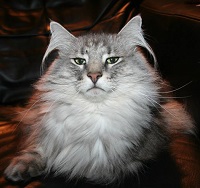 Max is a beautiful blue tabby boy from my first litter of kittens. From the moment he was born he decided he would be staying with us and we felt the same about him and kept his as a show neuter. He is has a wonderful laid back temperament and a fantastic Norwegian look with a full coat which he keeps all summer. Max has had a brilliant show career as a kitten including Best in Show kitten and Best Overall Norwegian at the FiFe Viking Cat Club show in January 2011 and Best of Variety at the Essex Cat Club Show in April 2011. Now an adult, his show career has gone from strength to strength, gaining the title Premier in his first three adult shows! He has gone on to gain the title Grand Premier and is now competing for Imperial certificates! We are so proud of him and love him to bits!